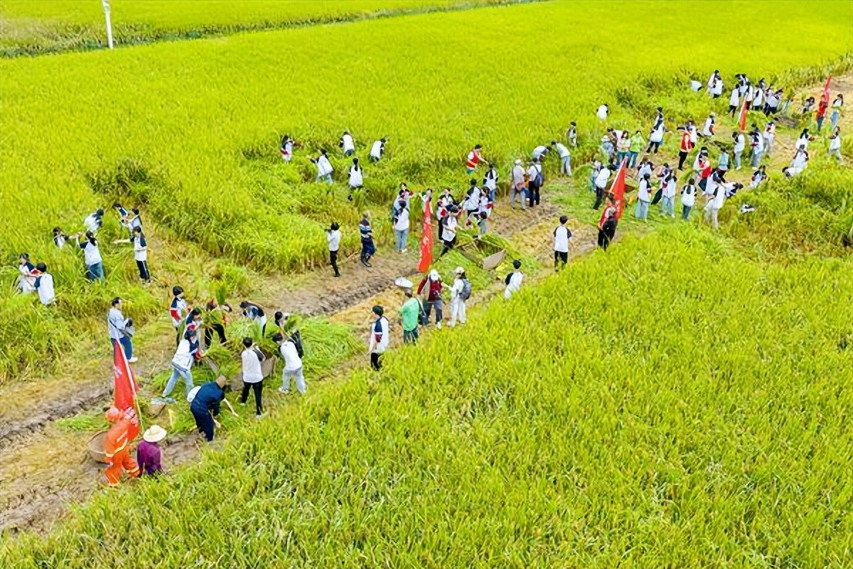 上午9时,活动在金色稻田的映衬下拉开帷幕。《在希望的田野上》《粮安天下安》等乐曲奏响田间,激昂的丰收锣鼓表演点燃现场氛围。